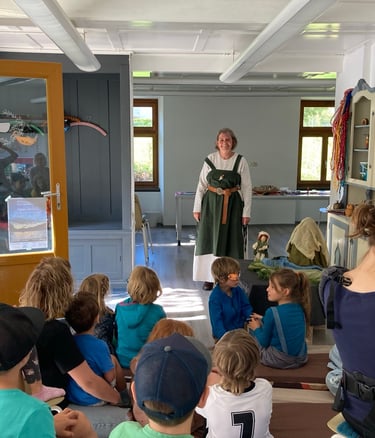 Märchen und Werken. Ulrike Brugger (Märchenerzählerin) ermöglichte für Jung und Alt das Eintauchen in eine magische Welt. Für einen runden Abschluss sorgte das anschliessende Werken, passend zum Märchen.