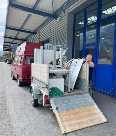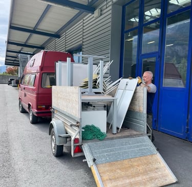 Grosszügige Spende. FlumRoc hat ein Grossteil der Möbel gespendet und der Transport wurde von freundlichen Nachbarn übernommen. Herzlichen Dank